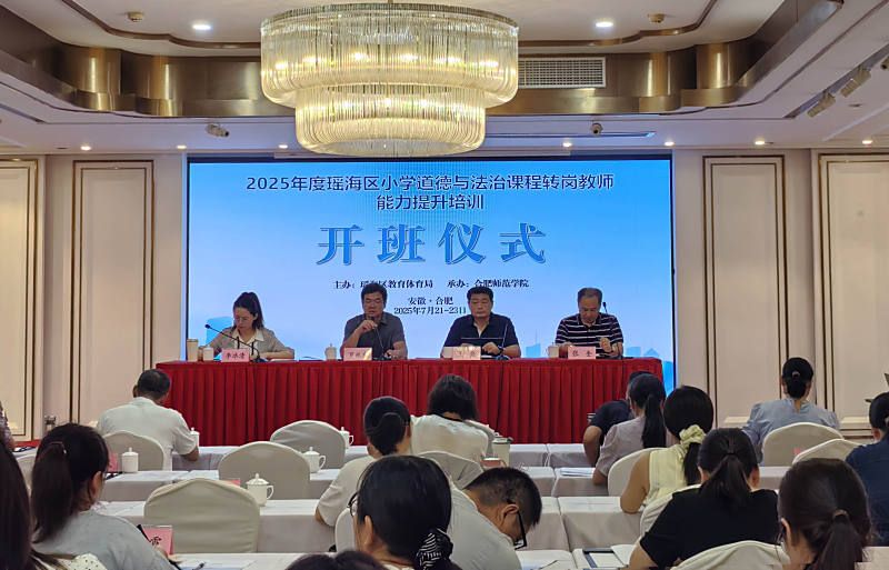 7月21日上午,瑶海区小学道德与法治课程转岗教师能力提升培训班在合肥顺利开班。瑶海区教育体育局机关党总支副书记、组织人事科副科长罗林东,教研室副主任张奎,组织人事科副科长李冰清,yl9193永利集团副院长王磊等相关领导出席开班典礼。来自合肥市瑶海区的60多名老师参加开班典礼,仪式由罗林东主持。