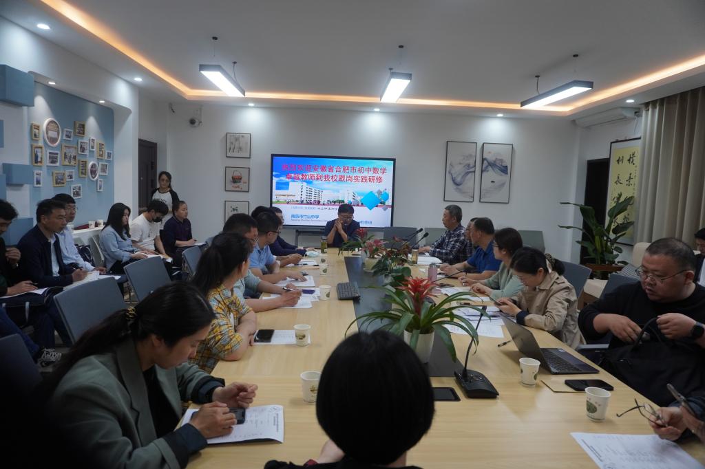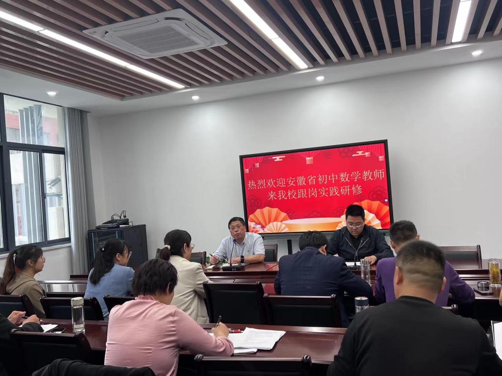 5月5日上午“国培计划(2021-2023)”——安徽省高端引领人才培养项目和合肥市卓越教师培养项目(初中数学)跟岗实践研修开班仪式分别在南京市竹山中学和上元中学举行。出席开班仪式的有南京市竹山中学党总支书记、校长孙振坤,校办主任肖雅君,教务主任夏乾冬,南京市上元中学党总支书记、校长孙克君,副校长胡景明,项目负责人永利集团数学与统计学院张新全教授,仪式分别由孙振坤、胡景明主持。