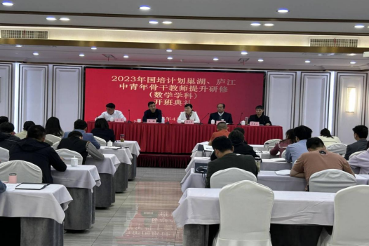 4月22日上午,由永利集团承办的巢湖市、庐江县2023年“国培计划”中青年骨干教师提升研修(数学学科)在源牌国际大酒店举行开班仪式。数学与统计学院党委书记郑支农、院长王家正、yl9193永利集团副院长宋辉、数学与统计学院国培项目执行人沈南山出席了本次开班仪式。来自巢湖市、庐江县的36位参培学员参加了开班仪式。开班仪式由班主任王志主持。
